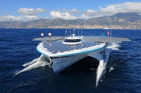 Ba năm qua, thế giới đã từng biết về một con tàu chạy bằng năng lượng mặt trời lớn nhất thế giới. Hải hành của nó có chuyến đạt gần 9000 km, với tốc độ trung bình chỉ 5 knot (10 km/h), chi tiết về nguồn năng lượng cho con tàu ngày càng bộc lộ rõ… Đó là tàu Turanor PlanetSolar, tên con tàu bắt nguồn từ tiểu thuyết của nhà văn JRR Tolkien. Nó mang cờ Thụy Sĩ, được Thụy Sĩ tài trợ sản xuất tại ở Kiel, Đức. Người ta đã chi 12,5 triệu euro để chế tạo tàu. Thân tàu được nghiên cứu kỹ, mô hình được thổi trong hầm gió nhằm tối ưu thiết kế kết hợp cả thủy động lực học và khí động học. Tàu này không có cột buồm, dù là cột tượng trưng. Bề mặt rộng nhất phía trên người ta đặt các tấm panen pin mặt trời, để có thể tối ưu cho việc thu năng lượng. Turanor có lượng dãn nước 85 tấn. Thủy thủ đoàn 5 đến 6 người. Nó dài 35 mét, rộng 23m, có thể chở 40 đến 60 hành khách. Diện tích cơ bản của cả hệ thống pin là 500 mét vuông, nhưng khi chạy đường dài, nó được mở rộng cơ học để tăng diện tích đón nắng lên 516 mét vuông. Hệ thống pin có thể điều chỉnh góc nghiêng bằng cơ cấu thuỷ lực nhằm tăng khả năng thu nhận ánh nắng từ hướng măt trời. Động lực của tàu là hai động cơ điện, 60kw, lắp trên mỗi thân một chiếc. Tốc độ tối đa của tàu này là 14 knot (25km/h). Hiệu suất sinh điện đạt 22,6%. Các panen này có sức chịu được lực đè nặng khoảng 80kg/mét vuông, vì thế người có thể đi bên trên nhẹ nhàng. Để dự phòng năng lượng điện trong những ngày thiếu nắng và đêm, tàu đặc biệt thiết kế hệ thống pin (ăc-quy) lithium-ion, khối lượng gần 9 tấn, được đặt dưới khoang không thấm nước, dưới đáy tàu. PlanetSolar được coi là tàu có là “bộ ăc-quy di động dân dụng lớn nhất” thế giới. Để sạc ăc-quy của tàu từ lúc cạn điện, đến khi đầy phải mất đến 2 ngày, Nhưng nó sẽ giúp con tàu vận hành trong vòng 72 giờ khi không có nắng. Thuyền trưởng Gérard d’Aboville bộc lộ, hành trình của tàu rất khác, nó không chạy cắt phương vị, cũng không lợi dụng hải lưu, mà chạy kiểu tránh mây. Vì thế nó không đến các cảng theo cách tính thời gian-tốc độ tỷ lệ thuận. Như thế việc dự báo thời tiết với tàu rất quan trọng. Tránh bão, tránh mây che nắng, không lợi dụng được gió nhiều, nên “hải trình không giống ai”. Các nhà khoa học trên tàu nghiên cứu giám sát các hiện tượng đại dương như xoáy nước, dòng hải lưu, nhiệt độ nước… “Từ khi chúng tôi rời Boston, nhiệt độ gần mặt nước đã tăng từ 10độ C phía bắc tăng lên 29 độ C phía nam của nó (chỉ trong khoảng cách 300 km). Đồng thời, màu sắc của nước chuyển từ màu xanh.” Gérard d’Aboville nói. Turanor bắt đầu hành trình ngày 27/9/2010, từ Monaco, đi vòng quanh thế giới. Các điểm dừng có ý nghĩa là Miami, Brisbane, Singapore, Hồng Kông, Abu Dhabi và Cancun. Tại đây, nó có mặt khi khai mạc Hội nghị khí hậu thế giới Cancun (quần đảo Galapagos thuộc Thái Bình Dương).Trong chuyến hải hành dài 8.000km theo dòng chảy của hải lưu Gulf Stream trên biển Đại Tây Dương mới đây tàu đã cập cảng ở Hạ Manhattan Mỹ. Tàu sẽ di chuyển đến hết tháng 8/2013, cùng với các điểm dừng theo kế hoạch là Boston, Newfoundland, Iceland và NaUy. Vào tháng 5/2012 con tàu này lần đầu tiên đi vòng quanh thế giới. Đó là một hành trình dài với 584 ngày, trải qua hơn 60.000 km. Turanor đã dừng lại ở 29 quốc gia và hơn 50 thành phố trong hành trình. Cảng Nha Trang ở Việt Nam đã có dịp đón Turanor vào tháng 8/2011, trong một chuyến hải hành qua Đông nam Á. Trung Ninh Nguồn: Chinhphu.vn