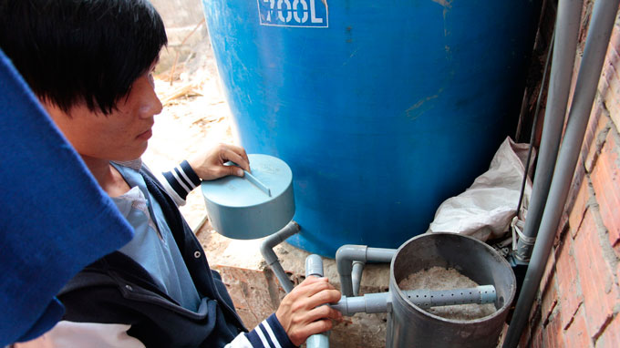 Một nhóm giảng viên, sinh viên Trường đại học Cần Thơ đã nghiên cứu lắp đặt thành công hệ thống làm mưa nhân tạo bằng cách trữ nước mưa rồi phun nước này lên mái nhà, sau đó nước được gom trở lại để phun tiếp... Nước mưa được thu gom lại có thể được tái sử dụng cho sinh hoạt. Nhờ đó người dân đô thị sẽ có thể tiết kiệm nước, điện... Ý tưởng này xuất phát từ chị Bùi Thị Bích Liên - giảng viên ngành quản lý môi trường, khoa môi trường và tài nguyên thiên nhiên Đại học Cần Thơ - trong một lần chị tham quan Vườn quốc gia Tràm Chim (Đồng Tháp). Khi dùng cơm tại một nhà ăn ở đây dù trời nắng nhưng chị Liên cảm thấy rất mát, nhìn lên mái nhà chị phát hiện có hệ thống phun nước nhân tạo, nhưng nước được phun chảy xuống đất hết. Về nhà, chị Liên cùng sinh viên của mình suy nghĩ việc làm hệ thống phun tương tự nhưng phải gom lại nước, và nước này có thể dùng cho sinh hoạt. Như một cái duyên, đúng dịp CTC-một tổ chức phi chính phủ của Anh-kết hợp với Văn phòng công tác biến đổi khí hậu TP Cần Thơ tổ chức hội thảo về sáng kiến của thanh niên chống biến đổi khí hậu, nhóm của chị Liên đề xuất dự án này và đã được CTC chấp thuận tài trợ. Thế là nhóm chọn và ngỏ ý với người dân ở phường An Bình (quận Ninh Kiều, TP Cần Thơ) để thực hiện dự án. Đến nay đã có tám hộ gia đình được lắp đặt hệ thống này (chi phí 8 triệu đồng/hệ thống, do CTC tài trợ). Hệ thống trữ nước và phun nước khá đơn giản với một bình trữ nước 300-1.000 lít, nước được dẫn bằng ống lên mái nhà và phun bằng máy bơm. Trên mái nhà thiết kế thêm một máng xối để gom nước chảy trở lại bồn chứa, kết nối với hệ thống lọc nước. Nước được lọc qua hai lớp cát, sỏi và lớp than hoạt tính, khi cần dùng nước trong bồn cho sinh hoạt chủ nhà chỉ cần mở van để sử dụng. Theo nghiên cứu của nhóm, sau 20-30 phút phun nước, nhiệt độ trong nhà giảm từ 2,1- 4,3OC, và sau khi ngưng phun phải đến 126 phút sau nhiệt độ mới tăng lên bằng với lúc chưa phun nước. So với dùng quạt máy hay máy lạnh, việc phun này làm nhiệt độ giảm một cách tự nhiên trong một không gian rộng, giúp tiết kiệm điện... Bà Phạm Ngọc Phụng, điều phối viên khu vực Cần Thơ của dự án AYIP (một dự án thuộc chương trình “Các thành phố châu Á có khả năng chống biến đổi khí hậu”, viết tắt là ACCCRN), cho biết sáng kiến làm hệ thống phun nước có tính thực tiễn cao, đáp ứng được nhu cầu thực tế của các hộ gia đình. Theo bà Phụng, sinh viên Đại học Cần Thơ nên tiếp tục nghiên cứu hạ giá thành lắp hệ thống để nhiều người nghèo có thể lắp đặt được. Nguồn: Tuổi Trẻ
